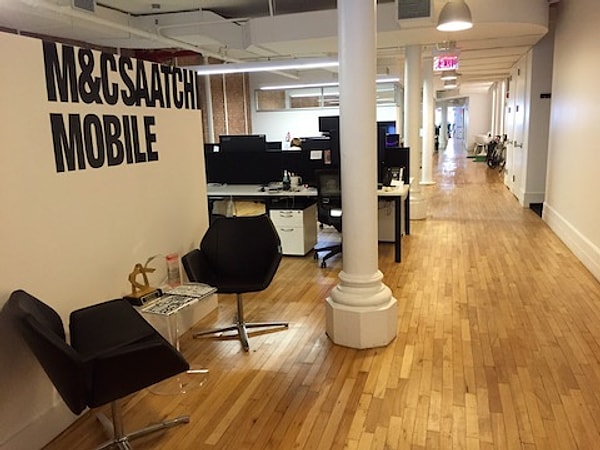 Нью-йоркский офис М&C Saatchi Mobile спроектирован в концепции минимализма и простоты, с большими открытыми площадями и минимумом мебели. На 750 квадратных метров открытого офиса предпочтение отдано нейтральным цветам.