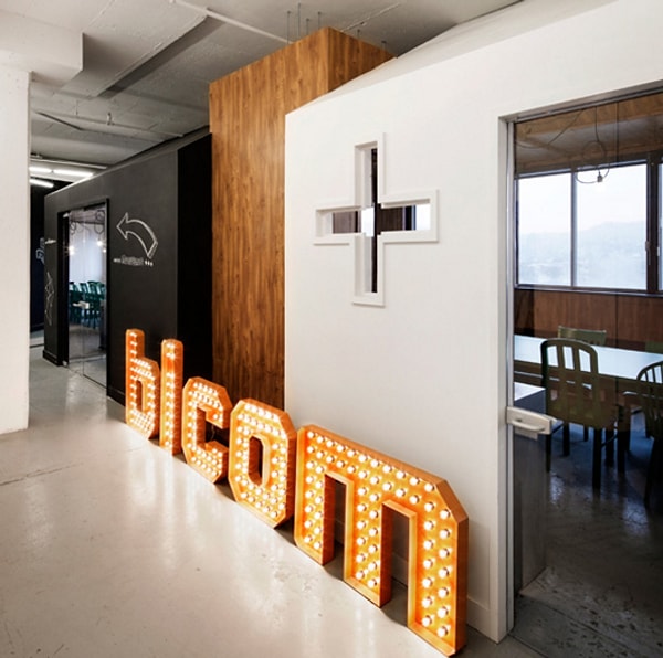 Офис канадского PR-агентства Bicon сделан в концепции дома. Здесь есть капсулоподобные конструкции. В этом проекте, целью которого было создание чувства нахождения в домашней обстановке, кабинеты расположены 'случайно'. Таким образом, разрушая монотонность и однообразие привычного 'офисного стиля', была сконструирована гораздо более интерактивная рабочая зона.
