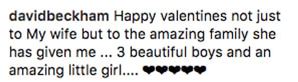 'Поздравляю с Днем Святого Валентина не только мою жену, но и всю нашу замечательную семью, которую она мне подарила... Трое прекрасных мальчиков и маленькую удивительную девочку...'