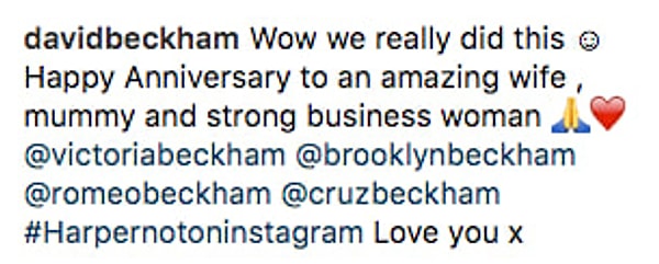 'Вау, мы и в самом деле сделали это :) Поздравляю с годовщиной потрясающую жену, маму и успешную бизнесвумен. Люблю тебя'