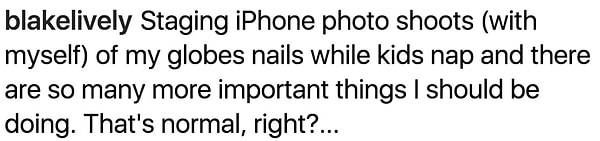 «Делаю фотки своих ногтей, пока дети спят, а куча дел ждет моего внимания. Но ведь это нормально, да?»