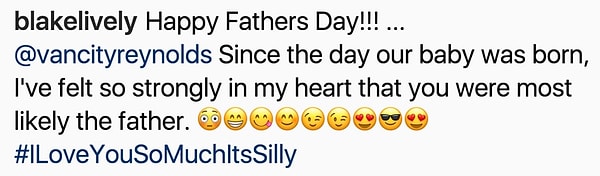 11. Блестящее поздравление мужу Блейк, Райану Рейнольдсу, с его первым отцовским днем: