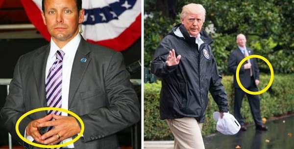 На каждом фото можно увидеть, что руки агентов всегда лежат на талии или расположены возле нее. Положение пальцев может отличаться, но положение рук всегда похоже. Такое расположение рук помогает в экстренной ситуации быстро среагировать и достать оружие.