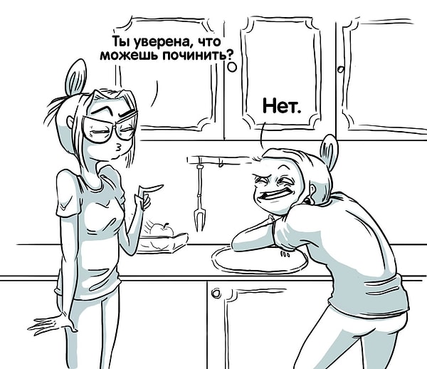Художница из Санкт-Петербурга Катерина Богданова живет вместе с подругой и ведет дневник о женской жизни в формате комиксов. Свой сборник историй она назвала '365 дней боли'. В нем она высмеивает типичные будни девушек.