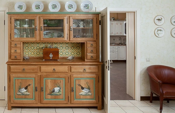 Либо выкидываем, либо реставрируем. Особенно неактуальны огромные советские стенки с прозрачными дверцами, стоящие глыбой у стены — места занимают много, а вещей вмешают мало. Туда можно разместить разве что такой же уже давно устаревший хрусталь.