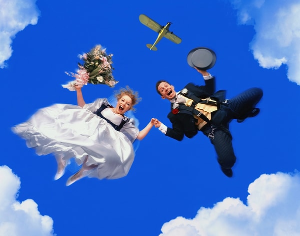 Всегда мечтали прыгнуть с парашютом? Почему бы не сделать это в день своей собственной свадьбы! Да уж, после такого поступка вы точно сможете безоговорочно доверять друг другу!