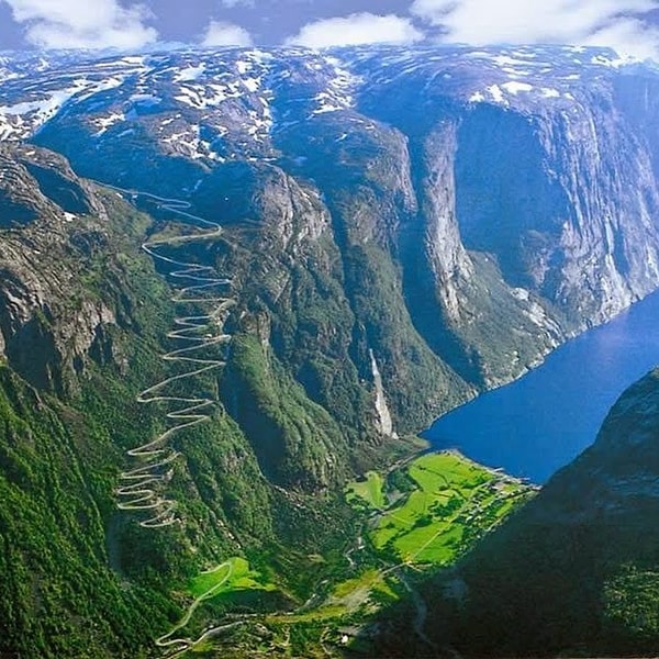 Мы почти уверены, что эта дорога - одна из самых опасных на планете. Любителям адреналина это обязательно понравится. Если вы осмелитесь совершить поездку на его высшую точку - озеро Андерсватн, - у вас будет возможность посмотреть вниз с самой безумной и самой леденящей кровь скалы в мире. Эта дорога открыта только летом, когда нет льда и по ней безопасно ехать.