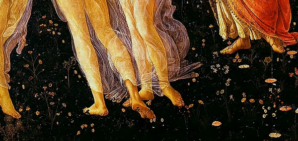 Обычно критики и зрители восхищаются фигурами на переднем плане Весны, но дело в том, что Боттичелли проделал огромную работу, нарисовав больше 46 разных видов растений с почти одинаковой точностью. А в общем на картине растения повторяются более 200 раз. Просто невероятно.