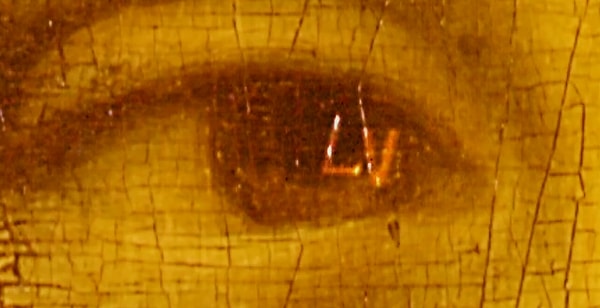 В 2010 году итальянский комитет по культурному наследию обнаружил в картине спрятанный набор символов. Их можно увидеть только через увеличительные линзы. Оказалось, что в правом глазу Моны Лизы Леонардо написал «LV». Специалисты считают, что это подпись Да Винчи. Но другие символы «CE» в левом глазу, и число 72, чуть ниже арочного моста, вызывают много вопросов.