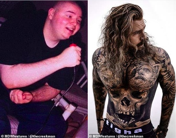 Мужчина, весивший когда-то 150 килограмм, сбросил более половины веса своего тела, а затем потратил 30 000 долларов на татуировки, чтобы прикрыть свои шрамы от операции по удалению лишней кожи.