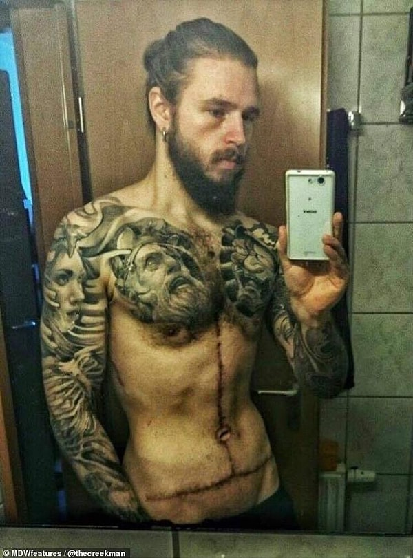 Именно тогда Кевин решил нанести татуировку на свои шрамы. У Кевина уже были татуировки на руках и верхней части груди.