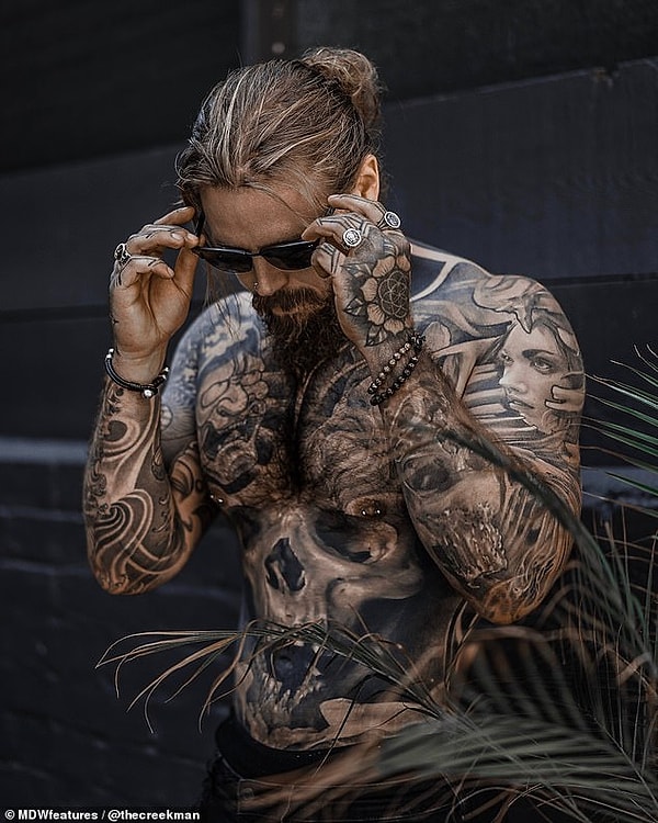 «Я всегда дружил с татуировщиками, поэтому за эти годы у меня были хорошие скидки. Я потратил около 30 000 долларов и 250 часов под иглой.