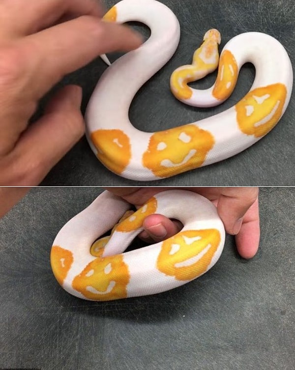 Американский селекционер Джастин Кобылка, который занимается разведением и производством рептилий около 20 лет, удивил пользователей интернета, когда вывел белого питона с тремя смайликами на шкуре.