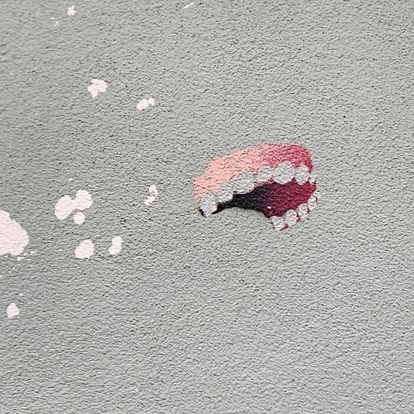 На фреске изображена пожилая дама, держащая носовой платок. У нее вылетает зубной протез, когда она чихает