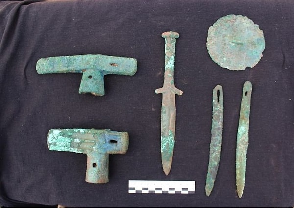 У мужчины этой пары было два топора, два бронзовых кинжала и бронзовое зеркало. Старший научный сотрудник, Юрий Тетерин, сказал: «Это блестящее захоронение, в котором хранится аутентичное бронзовое оружие.».