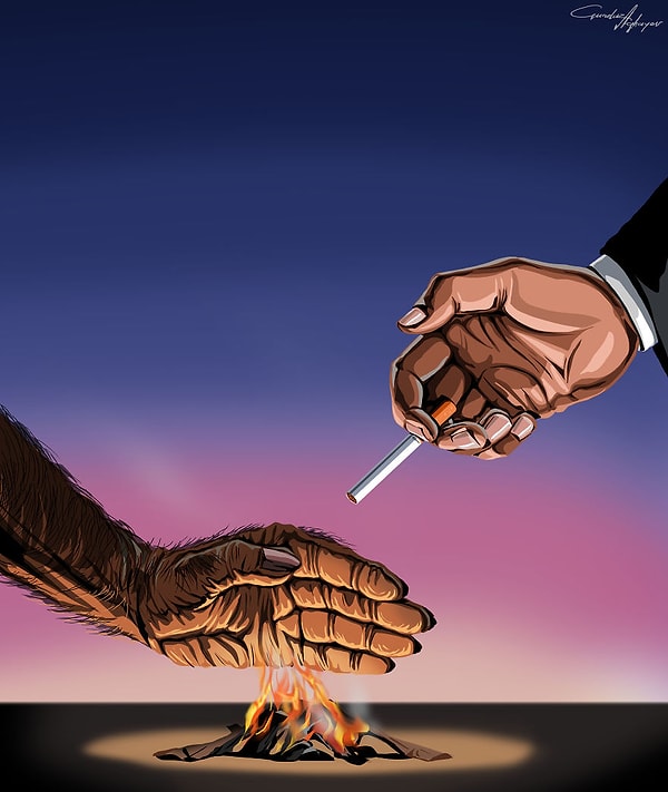 Недавно художник-карикатурист из Азербайджана - Гундуз Агаев - представил миру свои работы о том, как сила человеческой руки изменилась за тысячи лет. И вот что говорит о них сам автор: