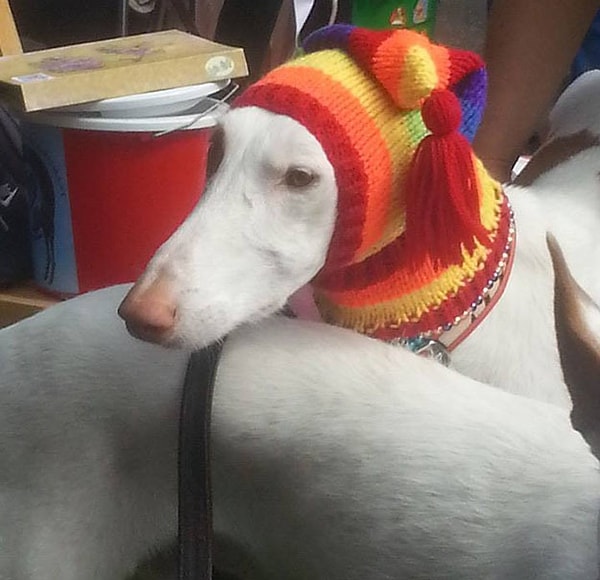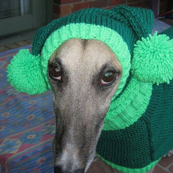Грейхаунд в яркой шерстяной вязанной шапочке – одна из самых умилительных вещей на свете.