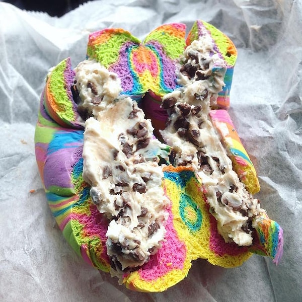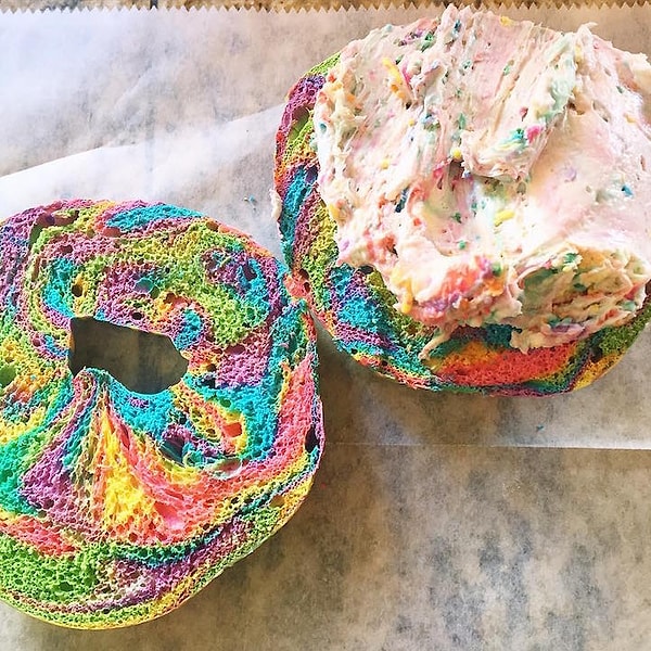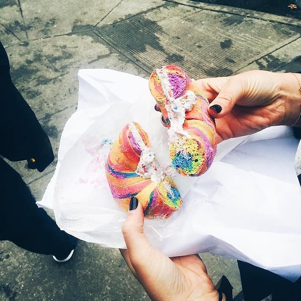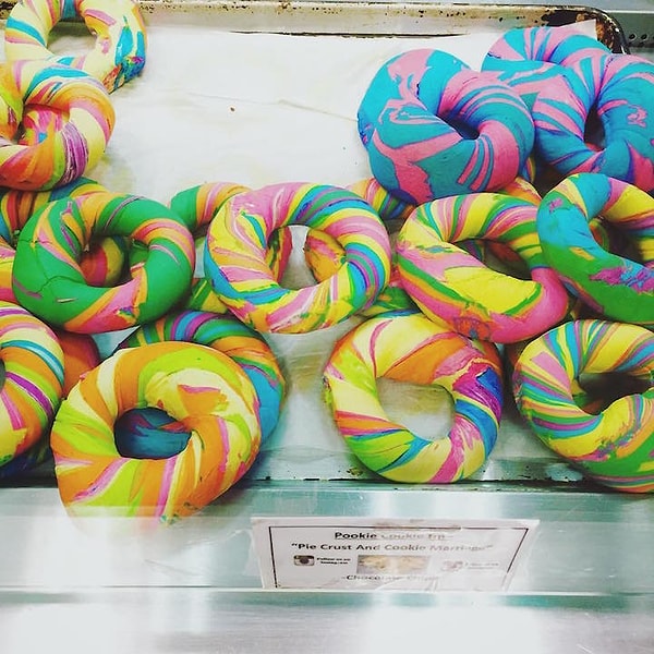 Булочная из Нью-Йорка добавляет красок Бруклину (и социальным сетям). Настоящий булочный виртуоз Скотт Росильо уже на протяжении 20 лет печет приправленные ванилью радужные баранки, создание которых сложный и времязатратный процесс. За то же время, за которое можно было бы сделать 1000 обычных баранок, Росильо успевает сделать всего 100, а все из-за сложного процесса окрашивания, сворачивания, укладки слоев. Зато, по окончании полки булочной пестрят этими уникальными баранками, покрытые сверху посыпкой, Nutella или творожным кремом.