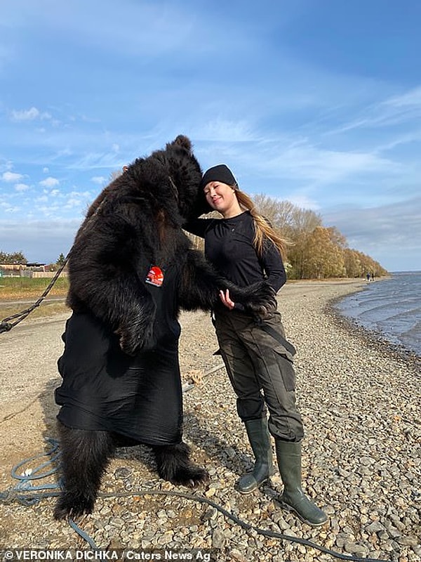 Бурый медведь, которого россиянка спасла из сафари-парка, любит рыбачить с ней в озере