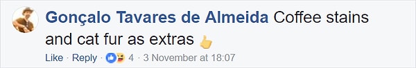 'Как бонус к тачке, кошачья шерсть и пятна кофе'.