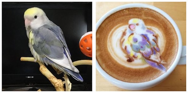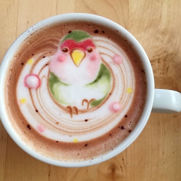 Любовь к птицам и к латте нашла свое отражение в удивительных рисунках, которые художник создает на поверхности кофе.