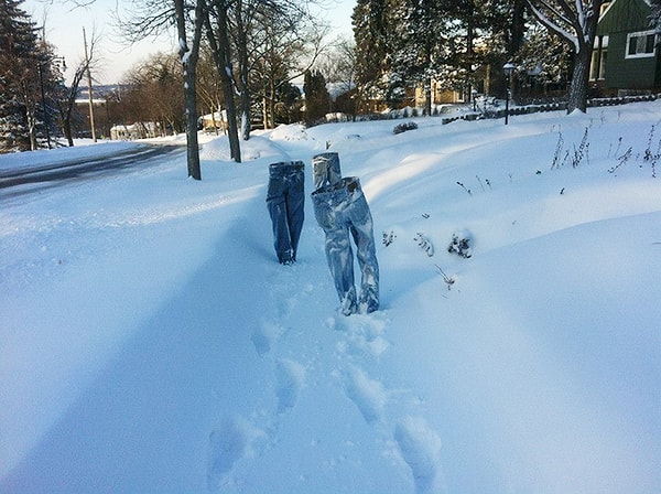 Теперь замороженные штаны можно встретить по всему Миннеаполису.