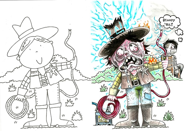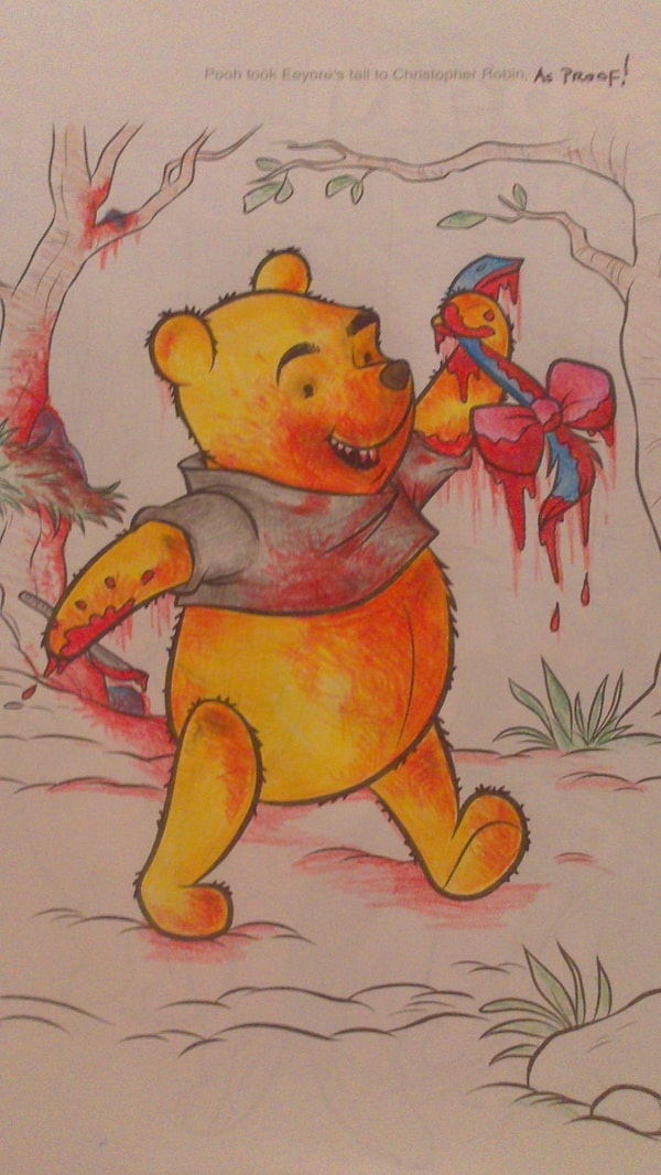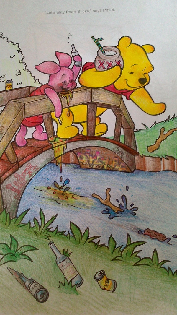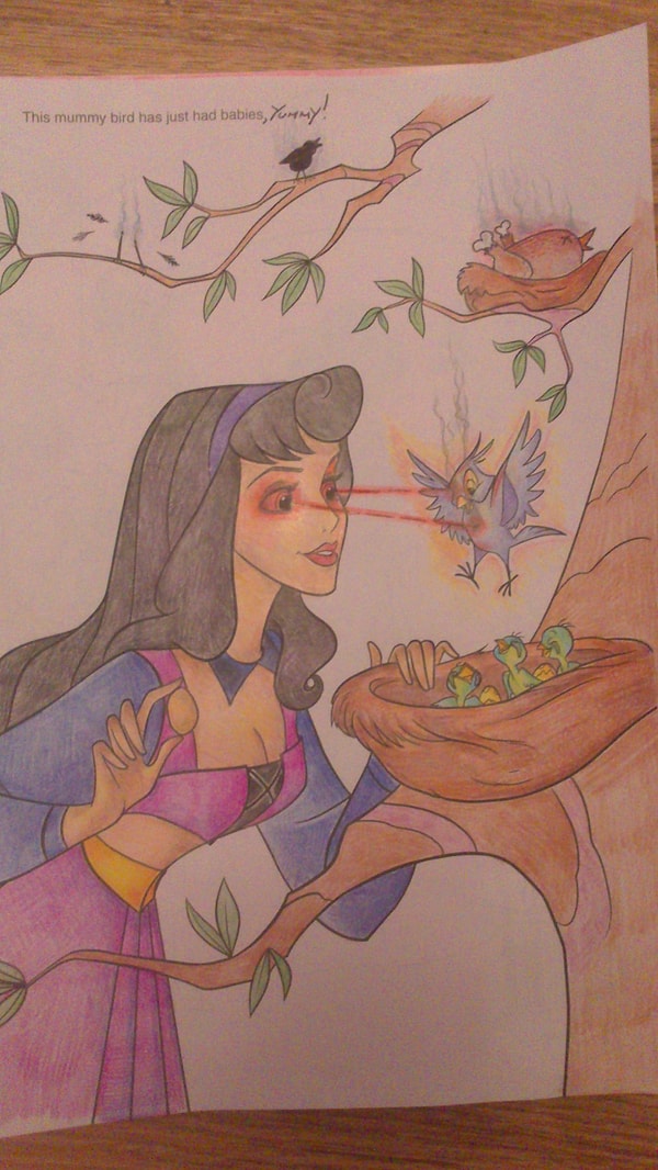 Эти картинки – результат работы взрослых, оторвавшихся на безобидных детских раскрасках. Наверное, все же детям лучше их не видеть :)