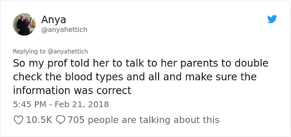 «Профессор попросил поговорить ее с родителями и проверить их группы крови, чтобы убедиться, что информация верна».