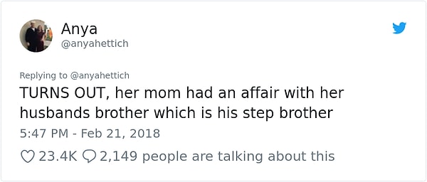 «В общем, у ее матери были отношения с братом ее мужа, который также является его сводным братом».