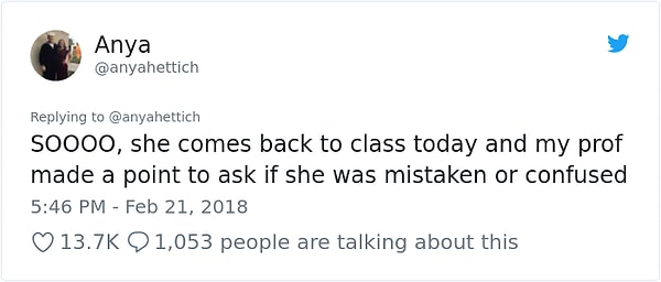 «Сегодня эта девушка снова пришла в класс, и профессор спросил ее, была ли ошибка в ее данных».