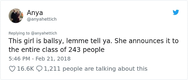 «Девчонка оказалась очень смелой, скажу я вам, потому что перед аудиторией в 243 человека она объявила об этом».