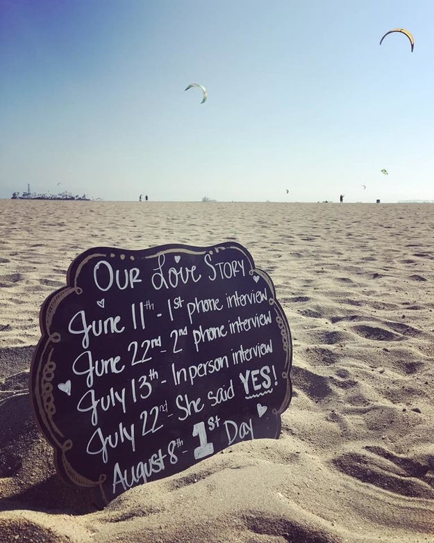 А здесь в "свадебном путешествии" на берегу моря вместе с предложением о работе.