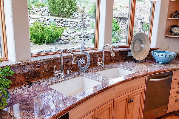 8. Ванная комната украшена голубым гранитом в стиле картин Ван Гога.
