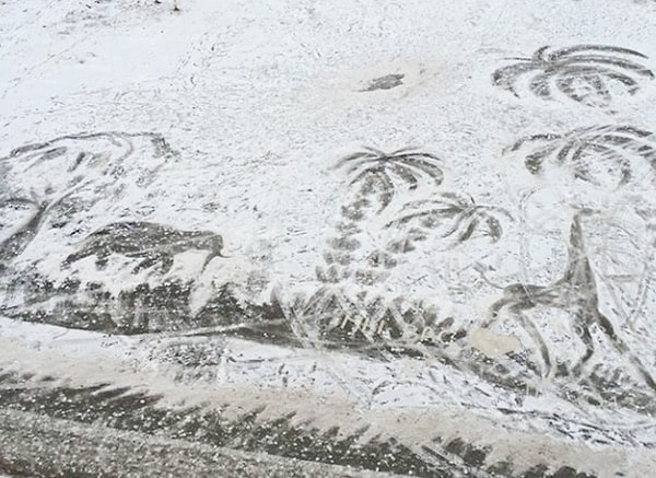 Дворник по профессии художник в душе: рисунки на снегу на радость школьникам