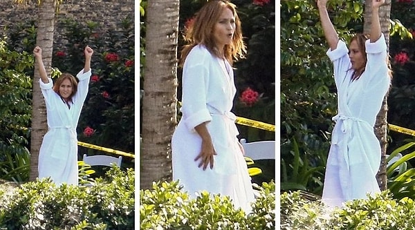 51-летняя артистка, похоже, максимально использовала свободное время, расслабляясь на улице в халате.