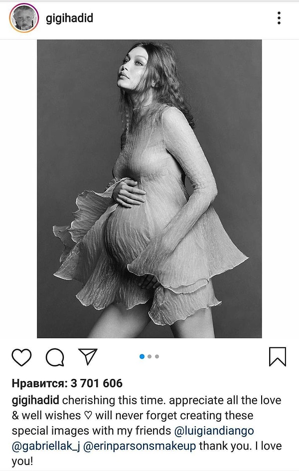 Однако Джиджи хранила молчание о своей беременности с тех пор, как впервые узнала об этой новости, сказав, что, по ее мнению, это «не самое важное, что происходит в мире».