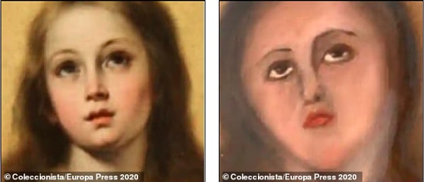 В июне 2020 года коллекционер произведений искусства из Валенсии был шокирован тем, что после реставрации лицо Девы Марии на копии картины 17 века стало неузнаваемым.
