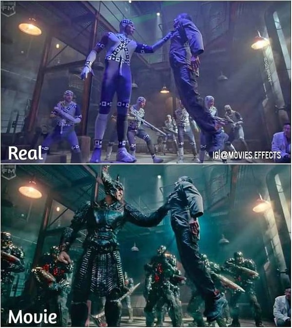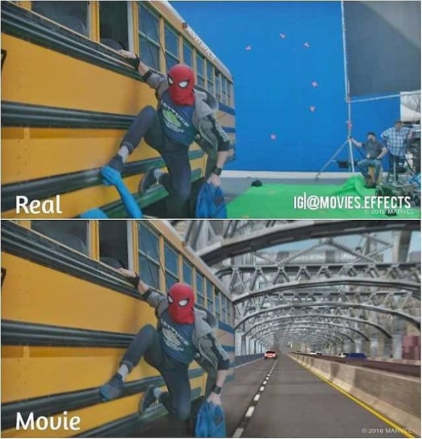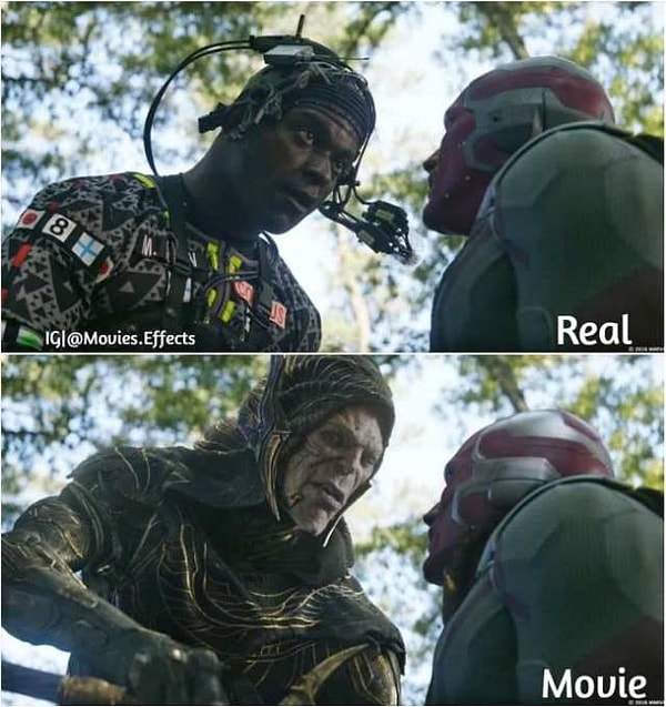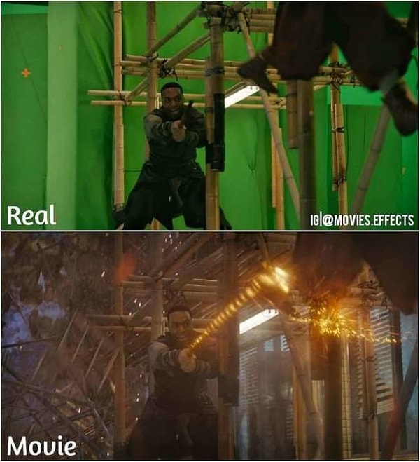 Все мы знаем о том, что шикарные фантастические миры в современных фильмах создаются преимущественно с помощью спецэффектов. И мы прекрасно осведомлены, что съемки проходят в павильонах с зелеными экранами, и выглядит все совсем не так, как мы потом видим в кино. Однако трудно предположить, насколько все иначе. Мы подобрали для вас несколько фото, доказывающих, что спецэффекты в наши дни достигли невероятного уровня. Смотрите и судите сами.