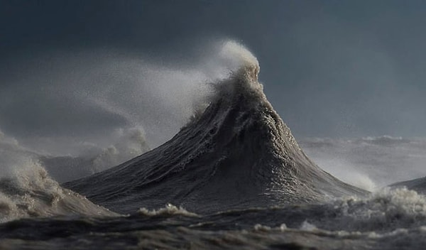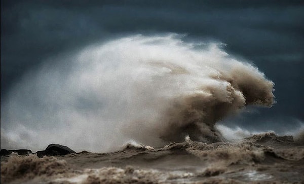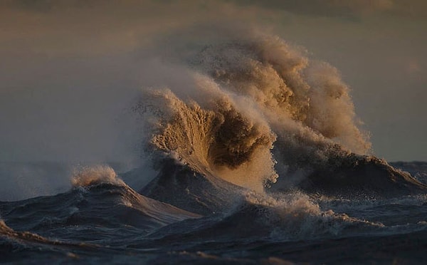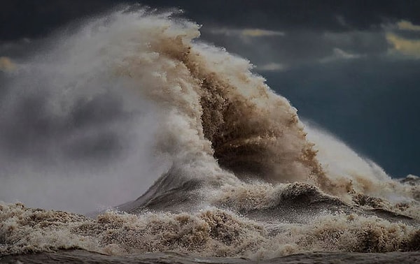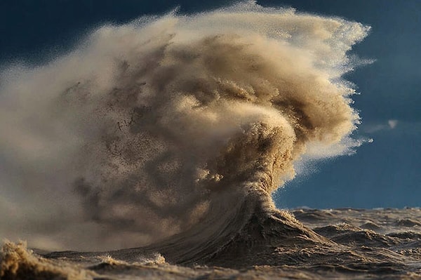 Дэйв Сэнфорд — профессиональный спортивный фотограф из Канады. В течение последних четырех недель 2-3 дня он проводил на озере Эри. По площади (25 700 км²) Эри занимает 11 место среди озер мира (считая Каспийское море) и 4 место в США. Подобно другим Великим Озерам, Эри своим поведением больше напоминает океан: c приходом холодов и ветров на озере поднимаются большие волны, которые в прошлые века вызывали многочисленные кораблекрушения. Чтобы сделать эти кадры, Дэйву приходилось часами не вылезать из воды, в результате получились захватывающие кадры, на которых волны скорее похожи на горные пики.