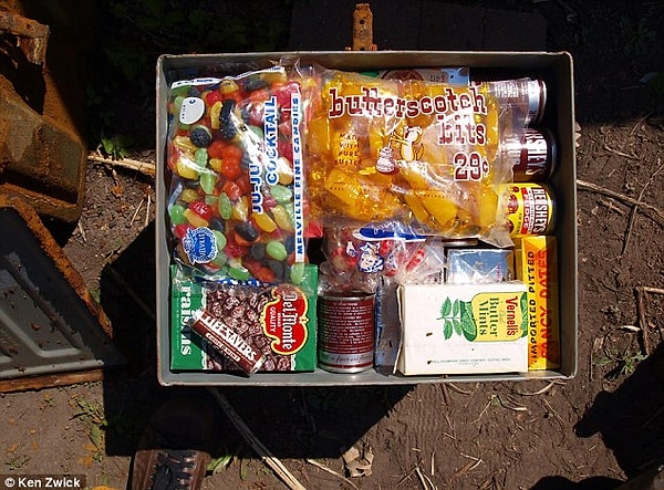 За металлической дверью скрывалось укрытие, в котором были запасы еды, датированные 60-ми годами, инструменты, фонари, лекарства, счётчики Гейгера, оружие для охоты и многое другое.