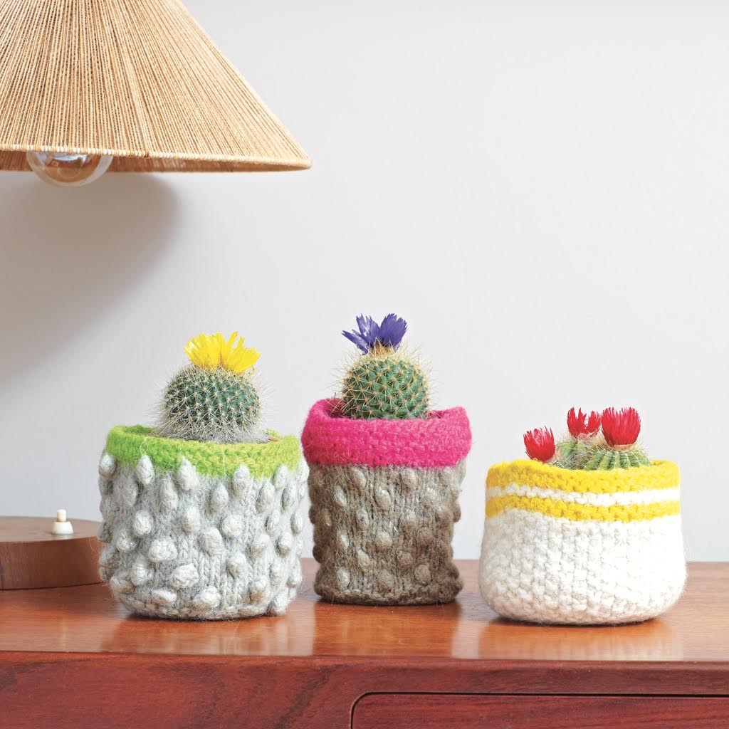 Попробуйте связать подобные чехольчики для ваших любимых горшков. Вариантов расцветки огромное множество - выбирайте сами!