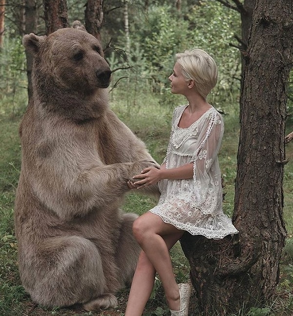 10. А ещё мишка - герой многочисленных профессиональных фотосессий. Его не боятся даже хрупкие девушки...