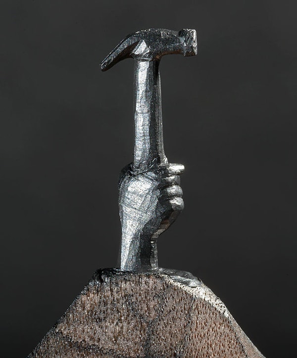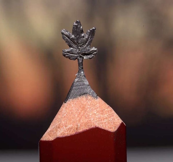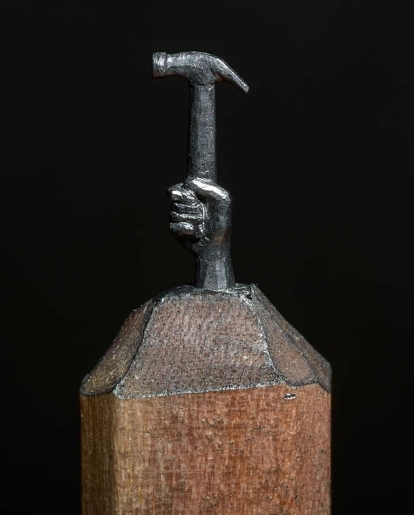 Чтобы выполнить эту впечатляющую скульптуру, художница использовала сборную технику. Она взяла карандаш и высекла из него поезд, приклеив его на другой карандаш, где изобразила рельсы и подземный туннель.