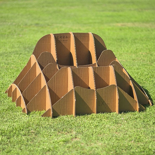 Как говорится, вырасти себе стул сам. В картонную основу помещается почва из вашего сада, которая позже зарастает мягкой зеленой травой.