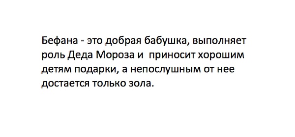14. Как зовут в Италии старушку, которая в новогоднюю ночь приходит через дымоход?