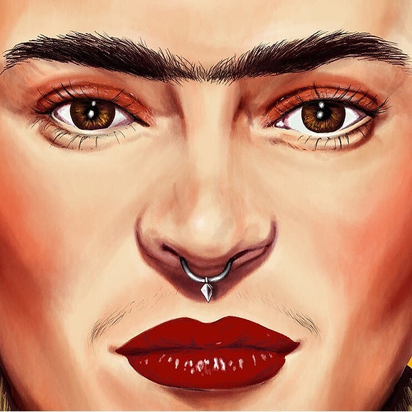 Живи Фрида Кало в наше время, она несомненно выглядела бы так - с пирсингом в носу, с татуировками, а волосы окрашены были бы на современный лад и заплетены в косы.