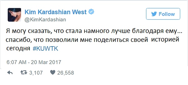 6. После выхода эпизода Ким также поделилась мыслями со своими фанатами в Twitter