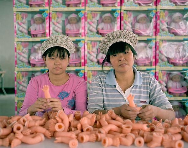 Сделав серию фотографий рабочих игрушечных фабрик в Китае, Майкл Вульф устроил выставку с этими фотографиями, обрамленными игрушками в количестве 16 000 (все они были куплены в Калифорнии, но произведены в Китае).