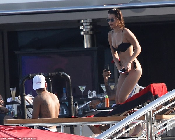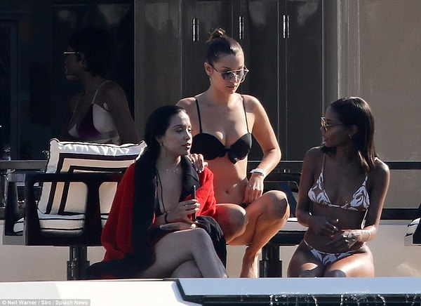 10. Белла Хадид также пришла на вечеринку, чтобы поддержать Льюиса Хэмилтона, облачившись в простое, но элегантное черное бикини.