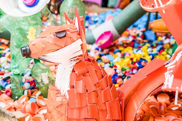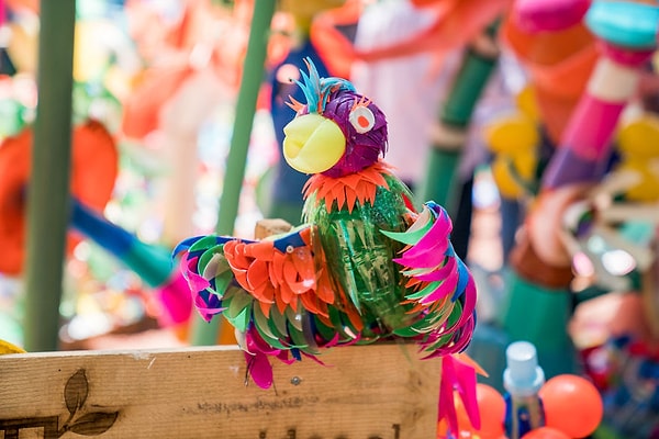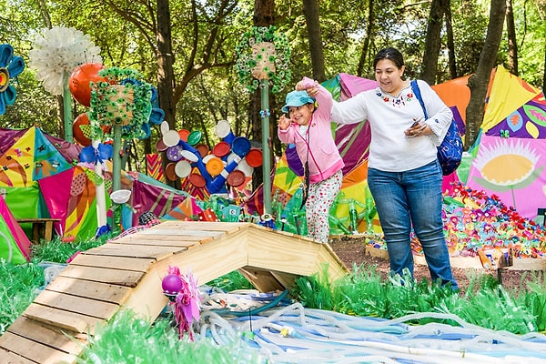 С помощью детей, студентов, и более 100 добровольцев в Мехико Томас превратил 3 тонны пластиковых отходов в красочный пластиковый лес площадью 500 м2, наполненный тысячами цветов, деревьев и животных.